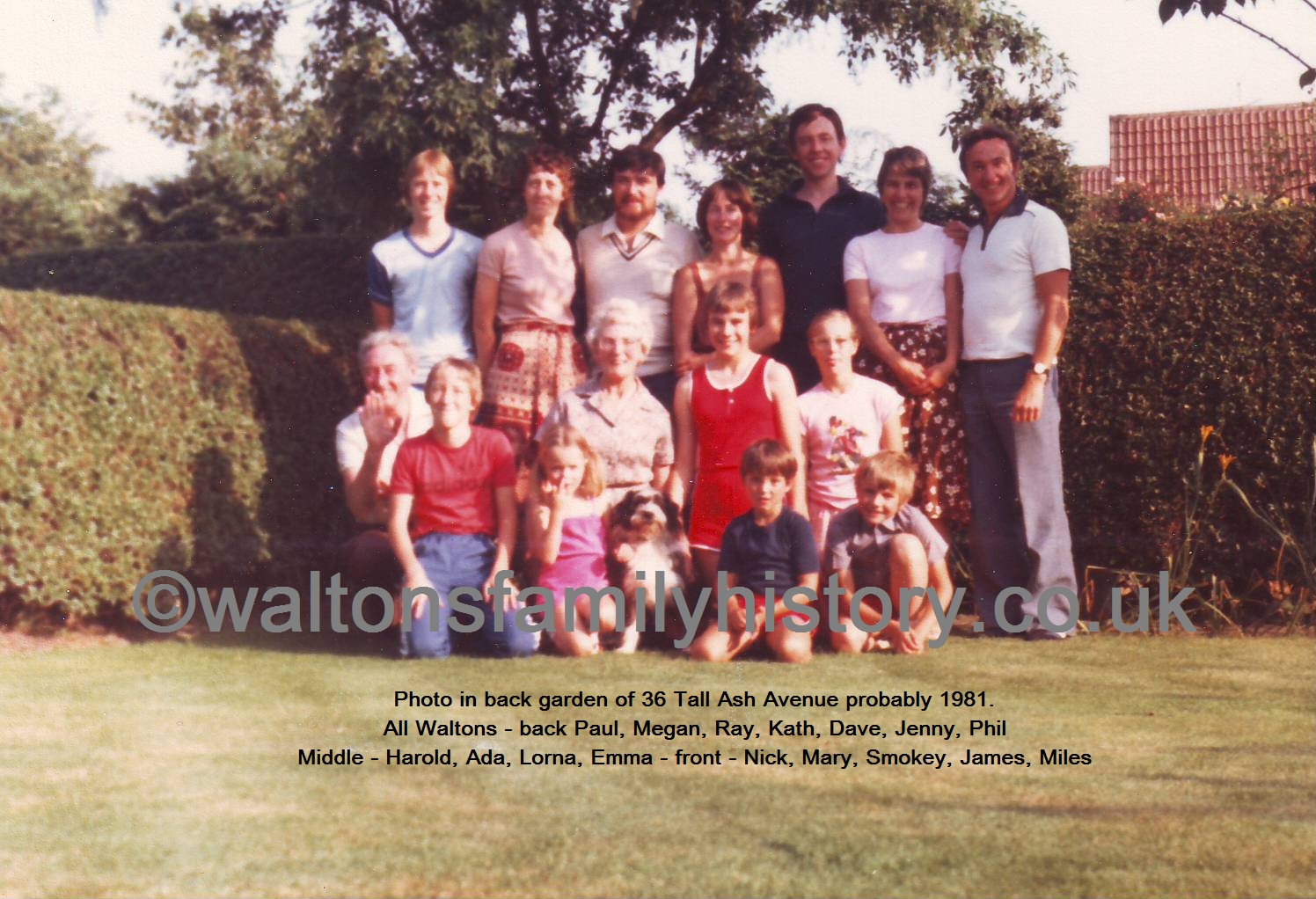 Group Photo in the back garden of 36 Tall Ash Avenue about 1981 |