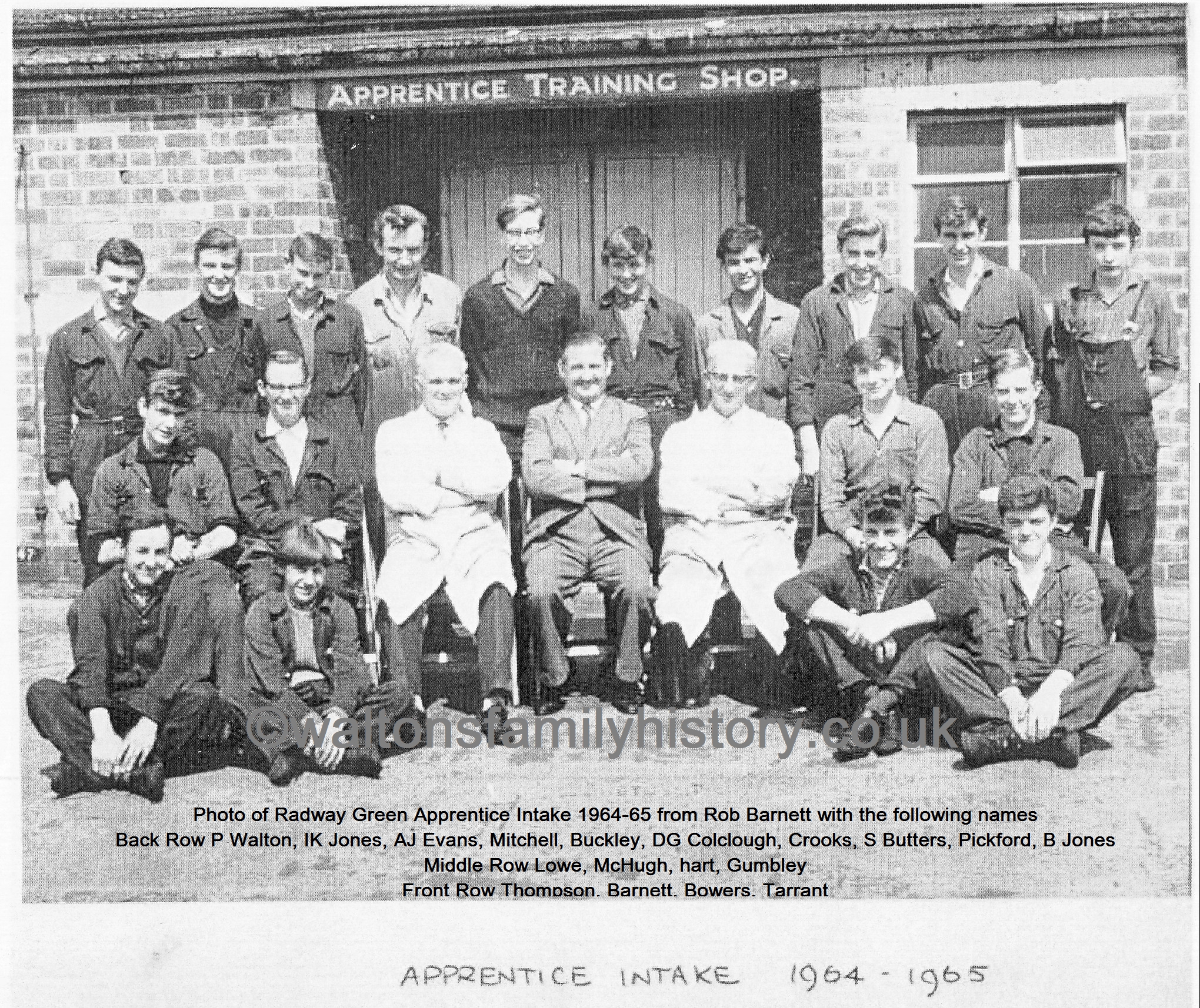 ![]() Radway Green Aprentice Intake 1964-65 includes Phil Walton |